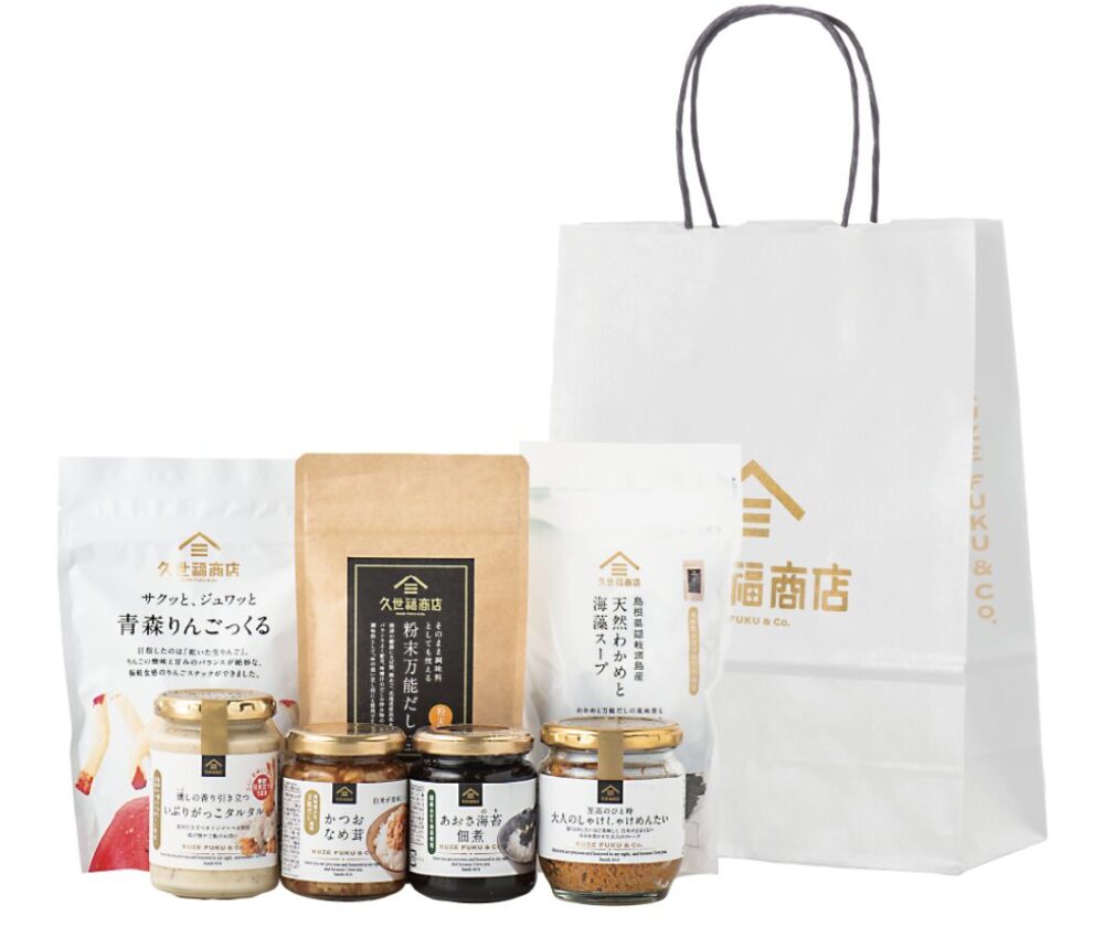| 門福袋 3,000円(税込) ![]() 引用元 : 久世福商店・サンクゼール公式オンラインショップ | ・しろえびせんべい 万能だし味 ・風味豊かな万能だし(5包入り) ・青森りんごっくる ・大人のしゃけしゃけめんたい(80g) ・白米が美味しい 梅なめ茸(130g) ・あおさ海苔佃煮(145g) ・北海道産小豆のあんバター(125g) |