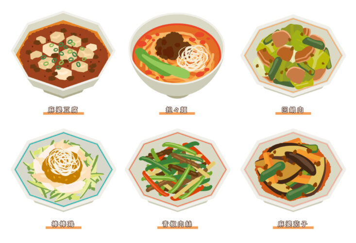 麻婆豆腐(マーボードウフ)、担担麺(タンタンメン)、