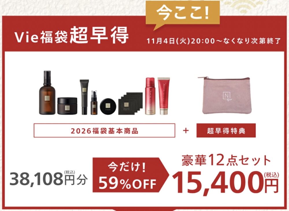 ![]() 引用元 : Nオーガニック楽天市場店 | 【Vie 福袋】 15,400円(税込) ![]() 超早得特典付き!! ・N organic Vie ポーチ 引用元 : Nオーガニック楽天市場店 |