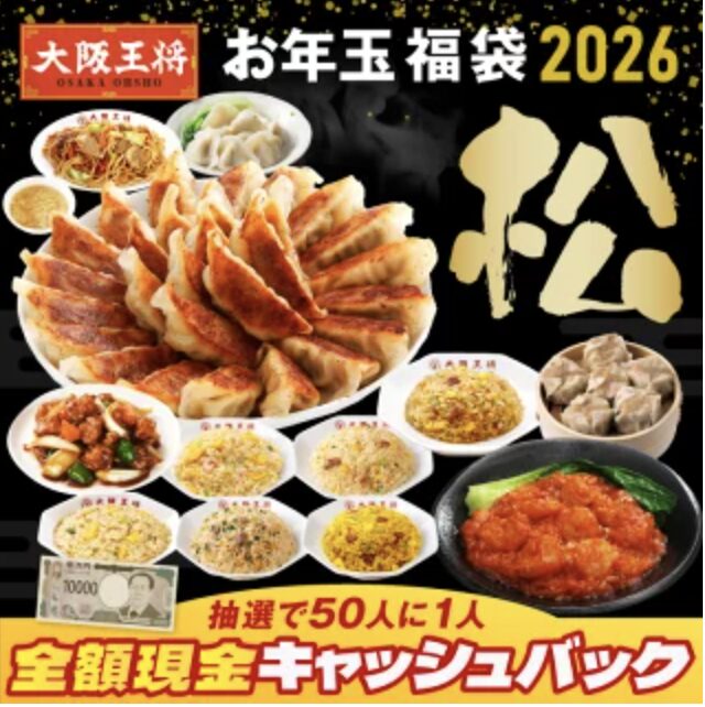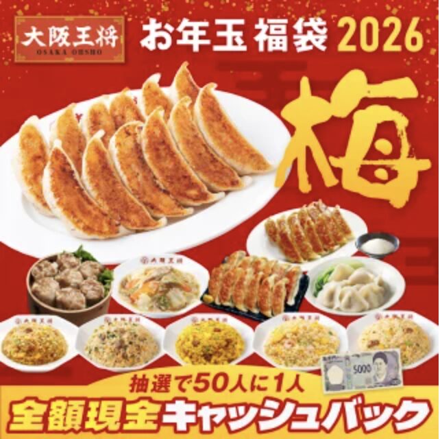 | 商品名 : 大阪王将 お年玉福袋 2026 梅 価格 : 5,000円 ← 8,160円相当‼️ |