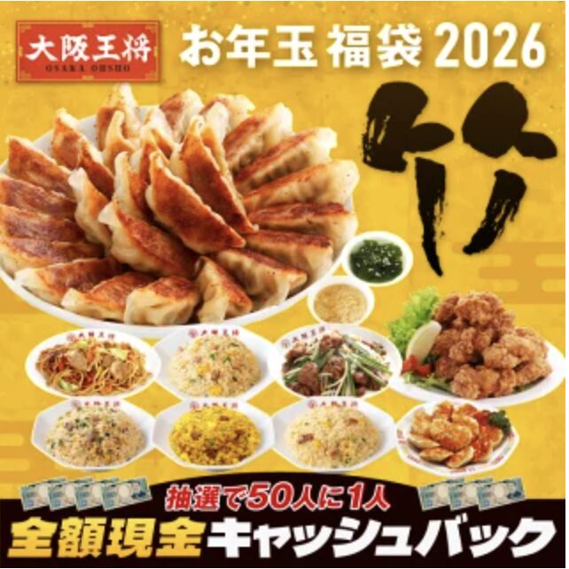 | 商品名 : 大阪王将 お年玉福袋 2026 竹 価格 : 7,000円 ← 10,350円相当‼️ |